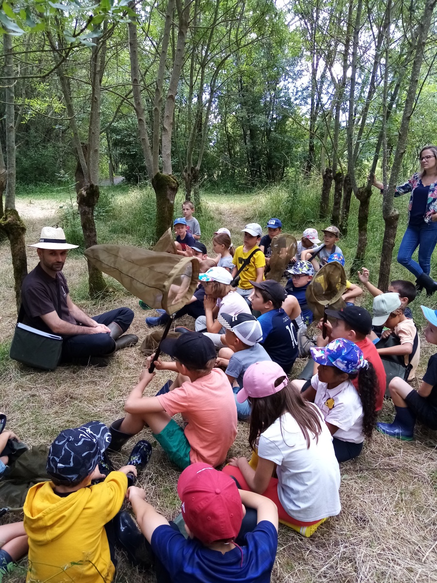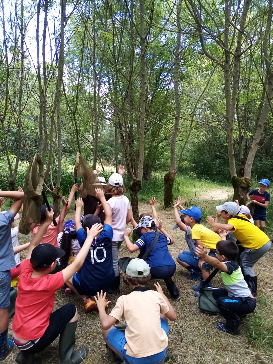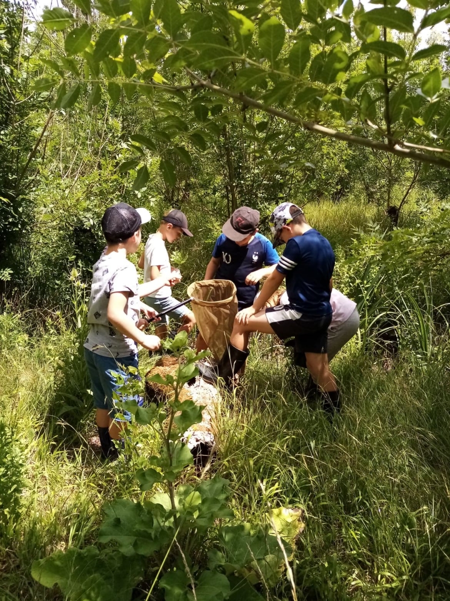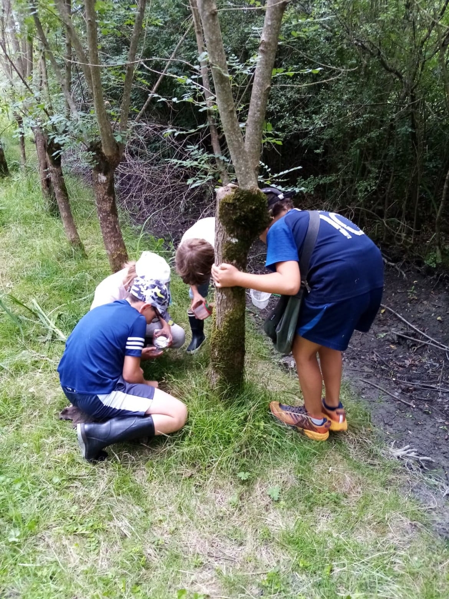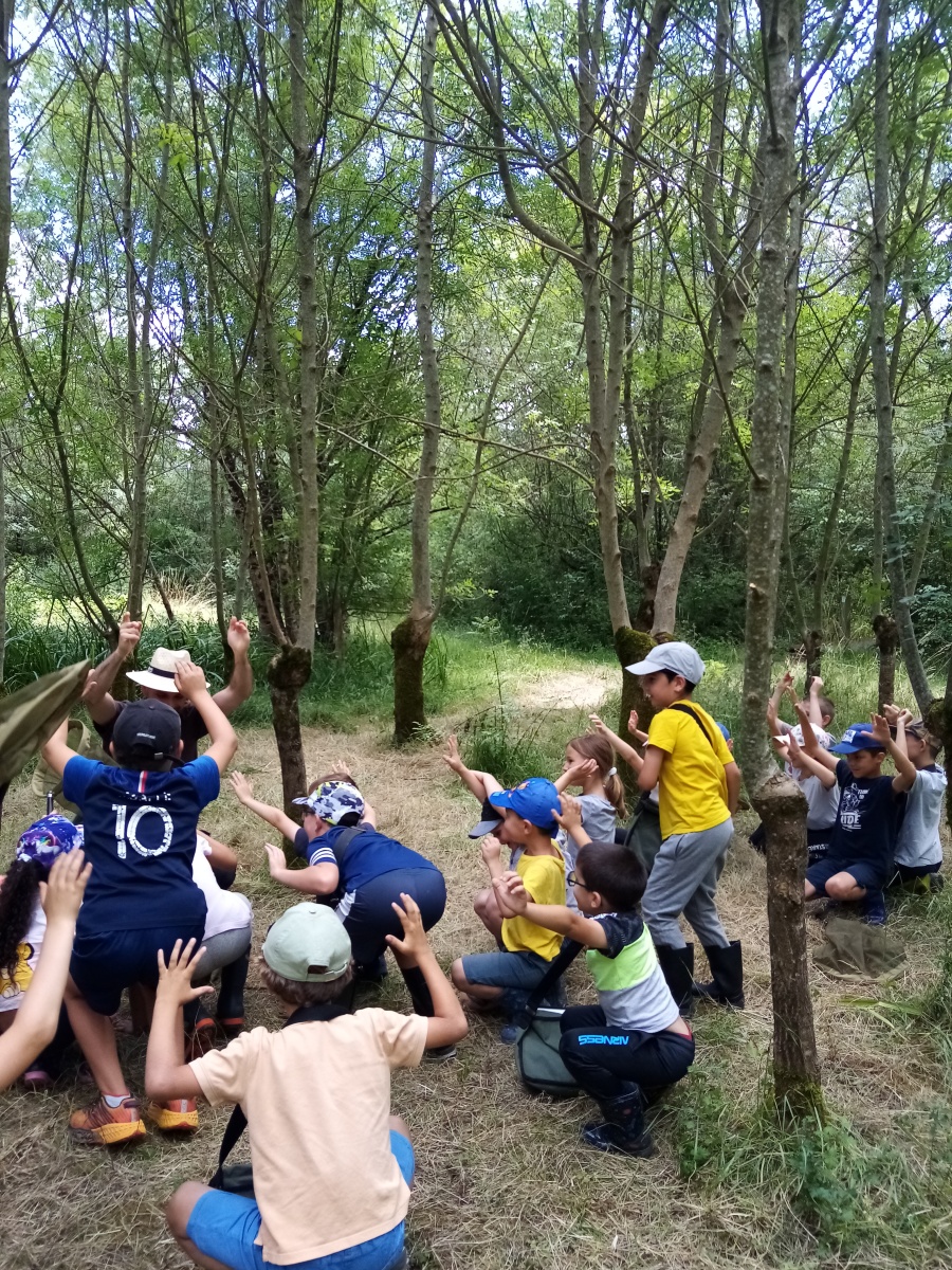 Ensuite nous avons pique niqué avant de participer à notre deuxième temps de la journée avec Rudy, notre animateur. Ce dernier nous a fait découvrir une partie de la réserve naturelle et plus précisément deux terrées sur lesquelles poussent des frênes tétards. Equipés de nos besaces remplies d’outils (loupe, filet à papillon, boite loupe insecte…), nous avons pris le temps d’observer les arbres et les petites bêtes qui vivent dans ce milieu