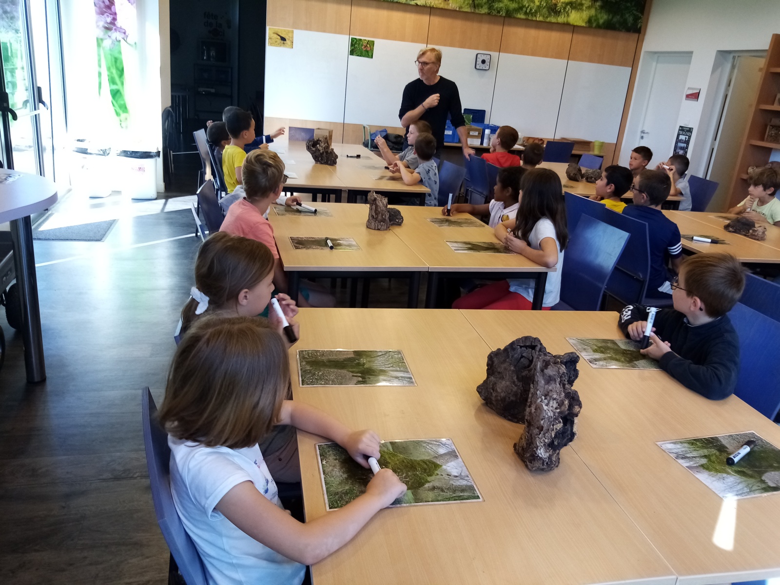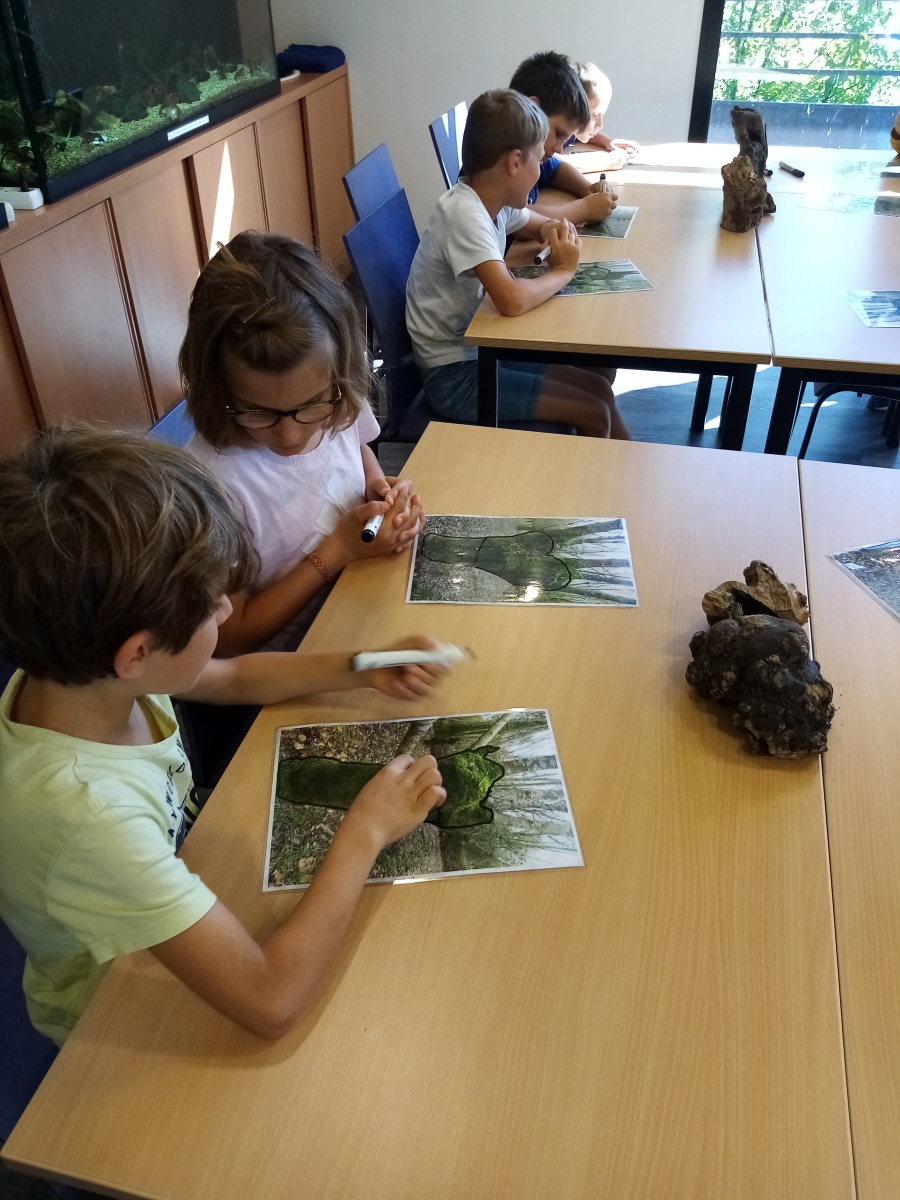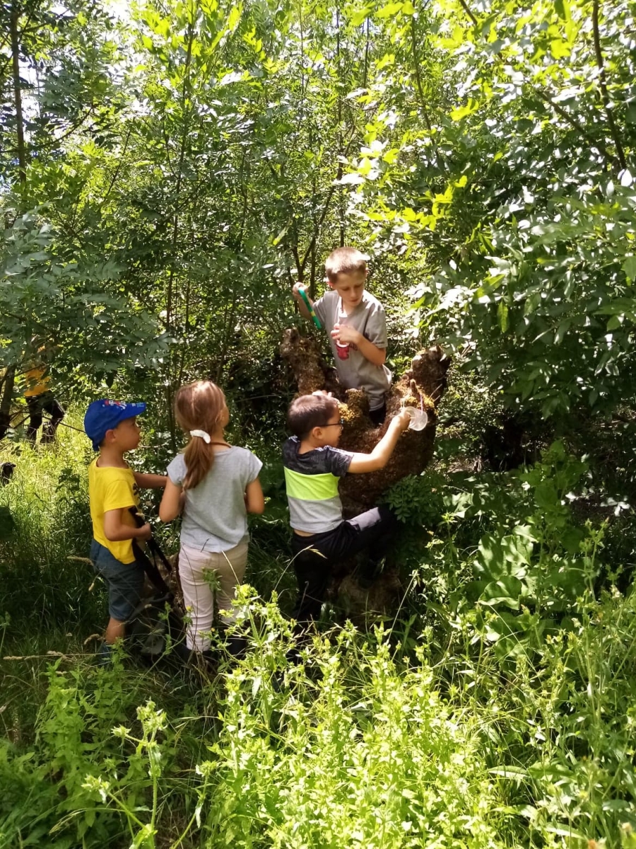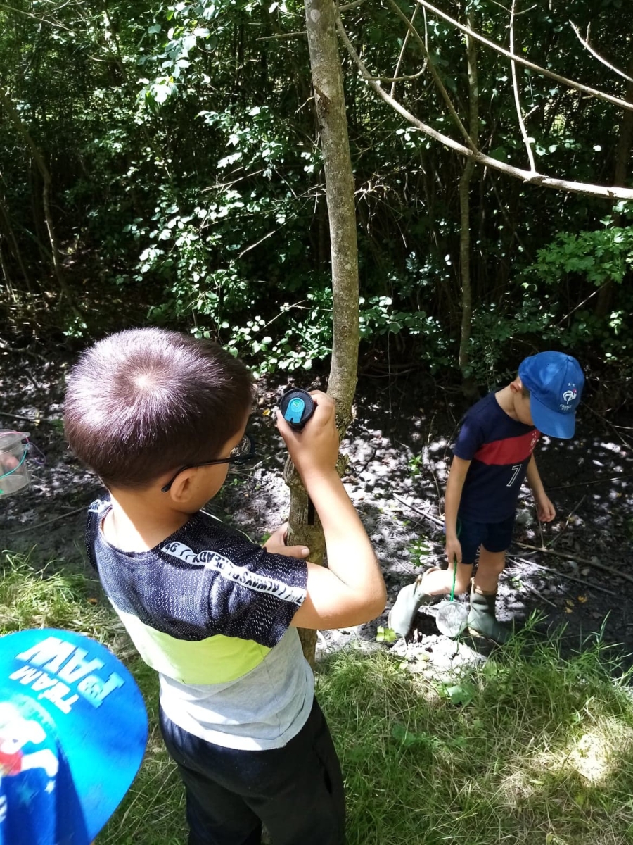 Ensuite nous avons pique niqué avant de participer à notre deuxième temps de la journée avec Rudy, notre animateur. Ce dernier nous a fait découvrir une partie de la réserve naturelle et plus précisément deux terrées sur lesquelles poussent des frênes tétards. Equipés de nos besaces remplies d’outils (loupe, filet à papillon, boite loupe insecte…), nous avons pris le temps d’observer les arbres et les petites bêtes qui vivent dans ce milieu