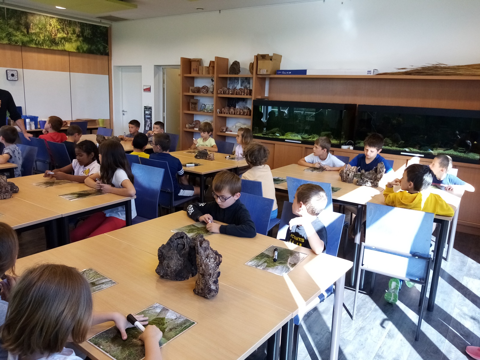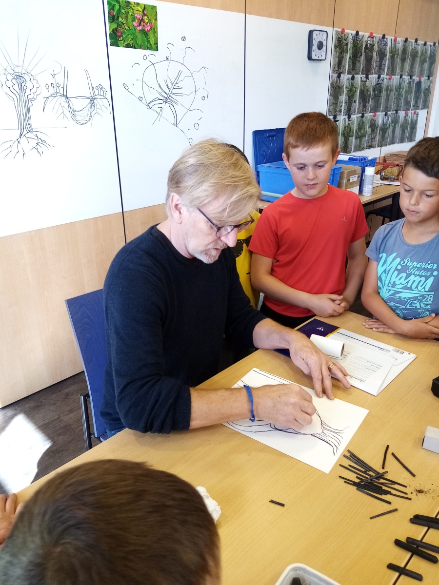 Nous avons débuté la journée par un atelier d’art avec Frédéric. Il nous a guidé dans la création de frênes tétards personnalisés. Pour cela, nous avons utilisé deux techniques; Tout d’abord le fusain puis, le modelage de l’argile. Nous sommes ressortis les mains très sales mais nous sommes fiers de nos oeuvres.