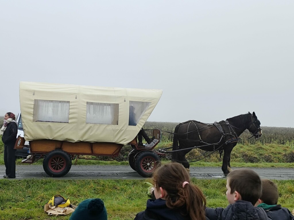 Les élèves de CP et CE1 ont eu la chance de se rendre sur le site en calèche, depuis l’école jusqu’à un terrain appartenant à Mr Mathieu Careil. Une aventure qui a rendu la matinée encore plus spéciale ! Sur place, les enfants ont activement participé aux travaux : creuser les trous, planter les jeunes arbres, installer le paillage… Malgré le froid, chacun s’est investi avec sérieux et bonne humeur.