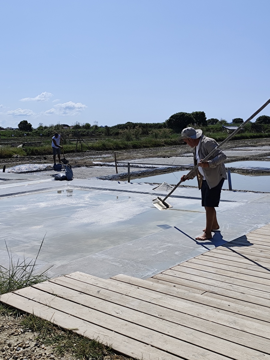 Ensuite, nous avons assisté à une démonstration du travail du saunier. Les enfants ont découvert comment le sel est récolté à partir de l’eau de mer grâce à l’évaporation naturelle. Ils ont pu manipuler une simouche ; l’outil utilisé pour récolté le sel afin de remplir une petite poche de ce trésor ! Les élèves ont beaucoup apprécié ce moment.